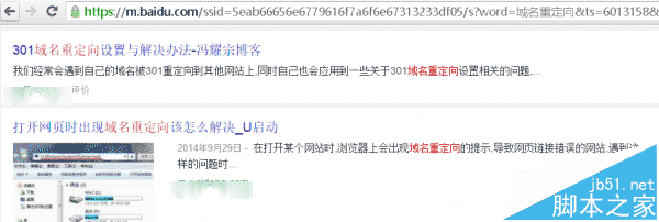 而我认为原理并非一直投诉搜索引擎导致的排名上升,投诉多了,说不定不上升还可能会下降,而可能是通过搜索引擎URL提交的数据,让搜索引擎误以为改网站用户体验会比其他网站好。比如第一搜索“域名重定向”得到下方的URL: