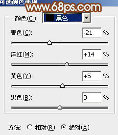 1、打开素材图片,创建可选颜色调整图层,对黄、绿、白、中性、黑进行调整,参数设置如图1 - 5,效果如图6。这一步把图片的主色转为橙红色。