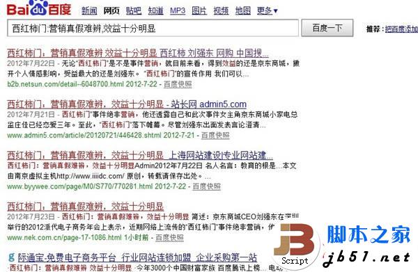 软文创作,在题目中要包含关键字。如果是关于热点事件的,在标题中就该提及那个事件,最好是把握好关键词。比如站长网站的投稿,关于百度大更新的稿件,在标题中包含“百度大更新”“百度K站”“百度6.22”“百度6.28事件”等相关关键词的,在搜索中排名都是比较靠前的。站长网本月搜索“谈百度大更新:到底错杀了多少网站”点击排名第五,前面一篇“百度算法再更新官方澄清K站事件”为站长网内部文章。7月份多个板块,全部文章中,排名能够到第五,或者说第一页,都是很不错的了。而在第一页的50篇文章中,关于百度更新的就有14篇,可见热点事件软文的受欢迎程度。再看文章“西红柿门:营销真假难辨,效益十分明显”,标题中含有“西红柿门”这个热点事件,在百度搜索中更容易被用户找出来。所以,获得了大量的转载。(注:数据资料于23日上午统计)