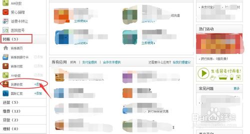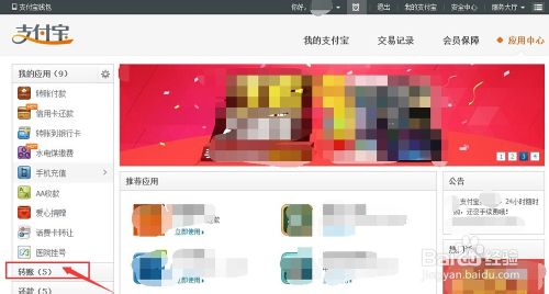 2、在我的应用中心,左侧列了我的应用清单,选择下面的转账