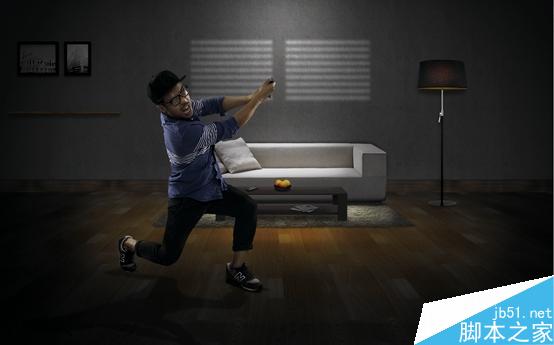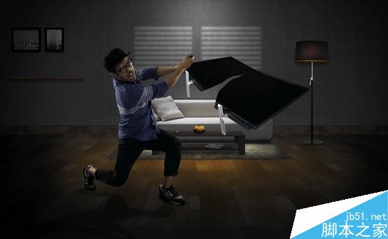 4:接下来就是结合模特的动作开始手绘元素(因为创意脚本有手绘的结合)先简单的把武器和电视的构图画出来,位置透视都差不多了,就可以根据构图来拍摄电视机素材。(电视机在模特动作确定后再拍摄。这样的话,电视机的角度和透视与模特的动作不会有太大的透视不和谐的问题)