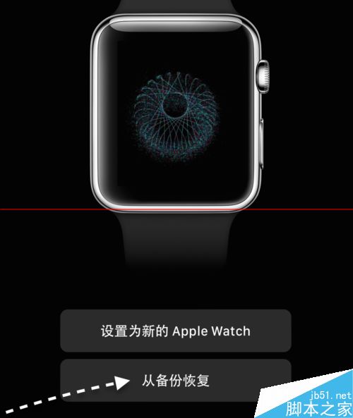 2、在 Apple Watch 上根据提示操作,选择相应的语言,也进入到配对模式。如果当前这部 iPhone 在此之前有与其它手表配对过,当配对成功以后会有恢复备份的选项。如图所示,此时可以根据自己的需要来选择,可以选择之前的备份,也可以选择配对为一个新的手表。