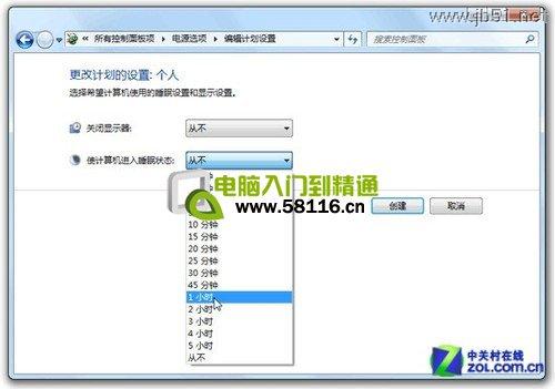 设置计算机进入睡眠状态时间