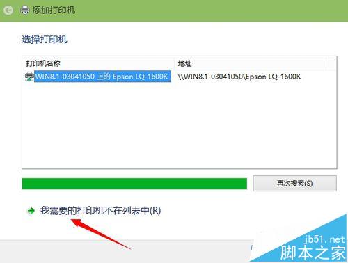 4、系统会自动搜索打印机。如果搜索不到请点击 我需要的打印机不在列表中