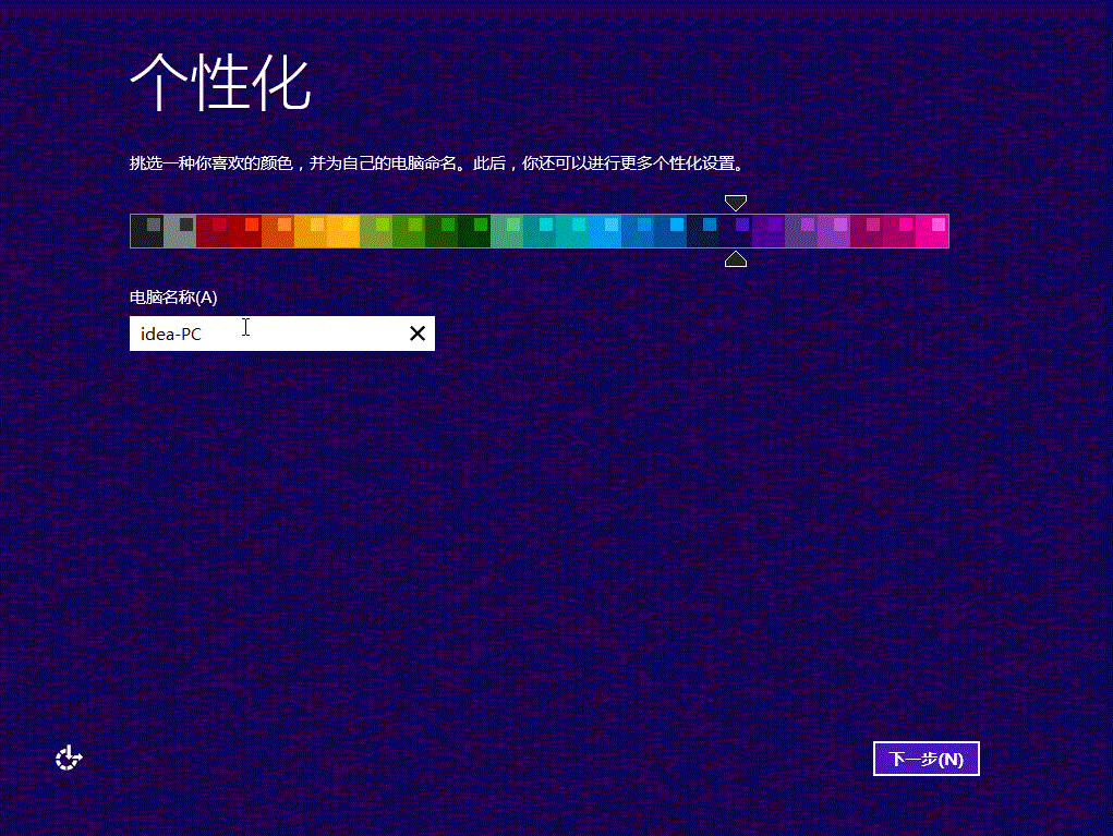 1. 系统将提示您选择背景色。如果是全新安装,而不是升级的话,系统还会要求您输入计算机名称。(默认idea PC)