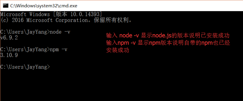 至此Node.js已经安装完成,可以先进行下简单的测试安装是否成功了,后面还要进行环境配置