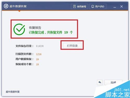5、等待个几分钟,正常情况下只要能够扫描出来都是可以恢复的。点击“打开目录”就可以看到之前被你删除的文件啦。