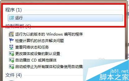 2、搜索到“运行”这个程序后(如下图所示),点击该程序