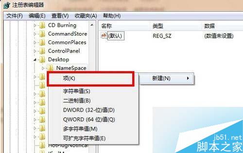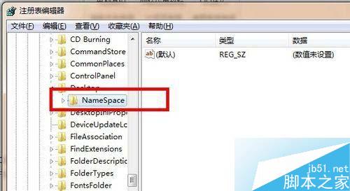 6、点击红色框内的“NameSpace”文件夹,右边出现“默认”等