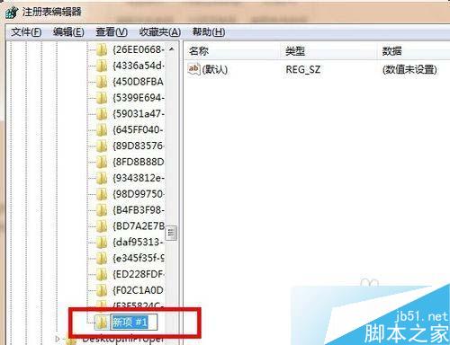 8、点击新建项后,出现如下界面,将新出现的项的名字(红色框框内显示)重命名为“{645FFO40——5081——101B——9F08——00AA002F954E}”------------请注意,要把大括号也带入