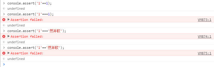 7、console.assert判断参数是否为真(==代表值相同就行,===代表值和类型都相同)