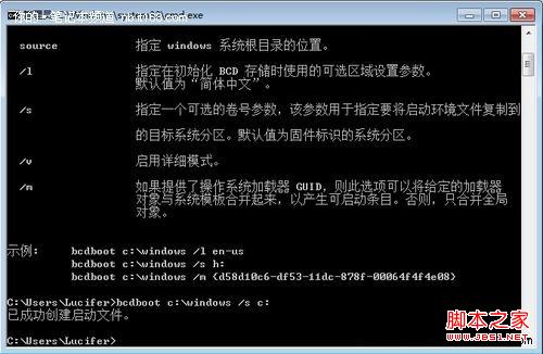 2.键入" bcdboot c:\windows /s c:" (: 这意味着将启动文件复制从c:\windows到c:\ )