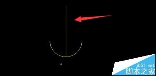4、以圆弧中点,做一条适当长的垂直向上的直线。