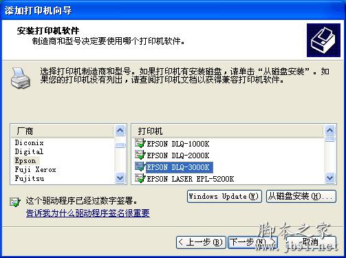 步骤四、在确定好端口之后,点击“下一步”然后或弹出厂商和打印机驱动的选择,这个也是根据用户的实际情况来找到对应的厂商和驱动程序,然后在点击“下一步”。如图所示: