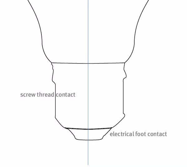 3、一个不完美的灯泡,对于我们是方便的,因为螺纹接触的左边和右边没有完全匹配。准备好钢笔工具开始绘图。当我们完成了这部分,我们继续快速在最底部绘制一个电气接触脚。这两个形状很简单,有点创意的造型,所以你不应该有任何问题,看一下我的轮廓是怎样重叠的,在这个汇合点上不要紧。