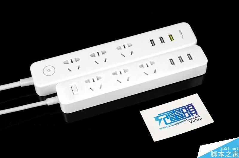 放上小米插线板作对比,下面瘦小修长的是小米,上面饱满一点的是华为。