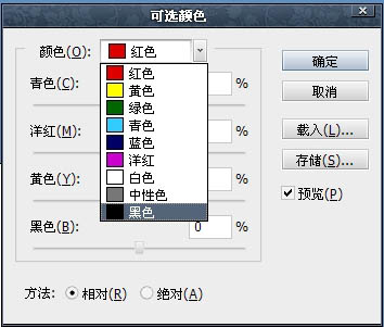 2、在PS里打开线稿,如果想把黑色的线稿变色,就点击“图像—调整—可选颜色”,选出黑色,调整数值,这样线稿的颜色就会变成红色。