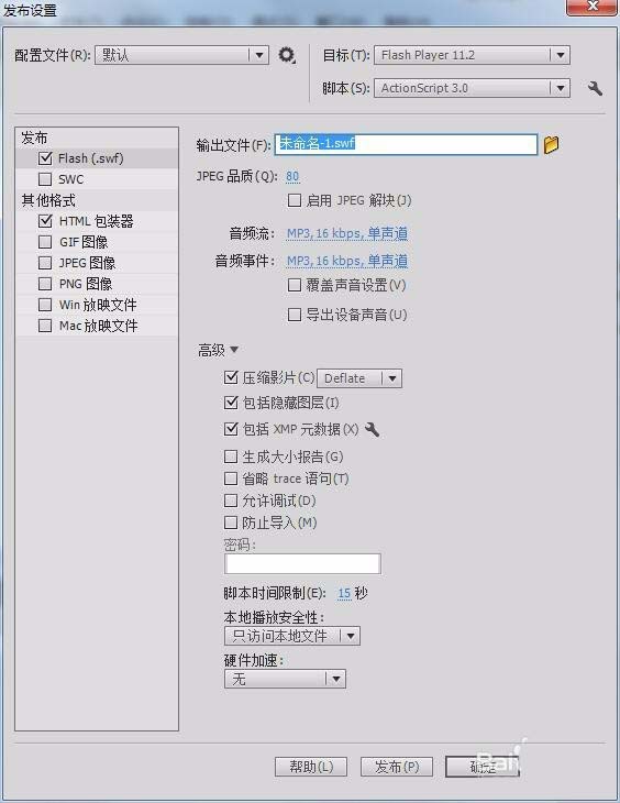 4、选择“文件”---->“发布设置”,打开“发面设置”对话框。