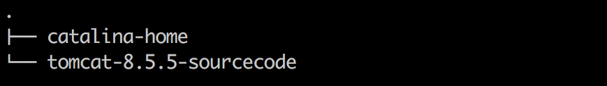 2、和tomcat-8.5.5-sourcecode这个目录的上层目录上,建一个和该目录平行的目录catalina-home,将tomcat软件解压后,在解压的目录下,将以下目录拷贝到catalina-home中: