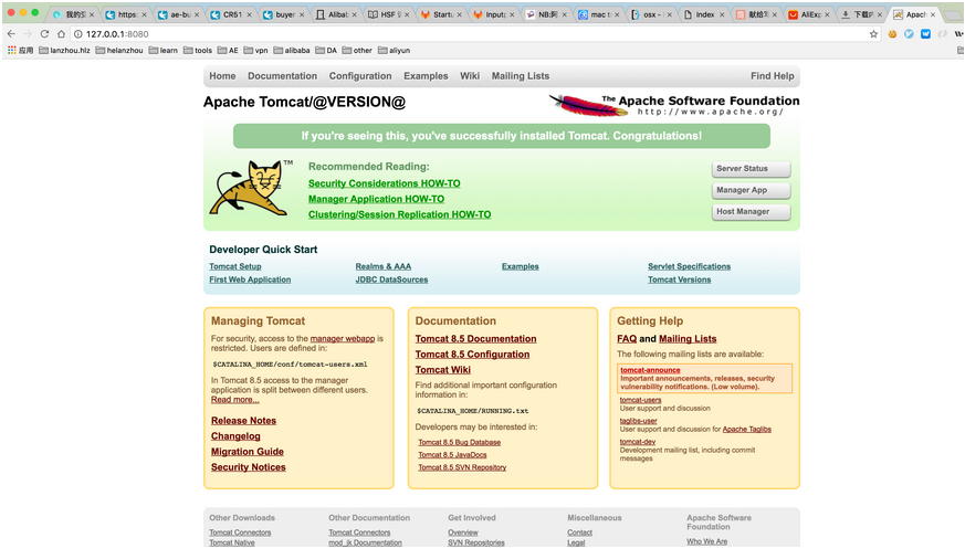 5、打开chrome浏览器,输入127.0.0.1:8080,这时候,你能够得到下面的页面: