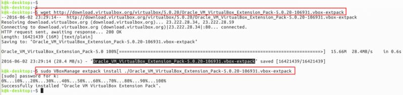 $ wget http://download.virtualbox.org/virtualbox/5.0.20/Oracle_VM_VirtualBox_Extension_Pack-5.0.20-106931.vbox-extpack