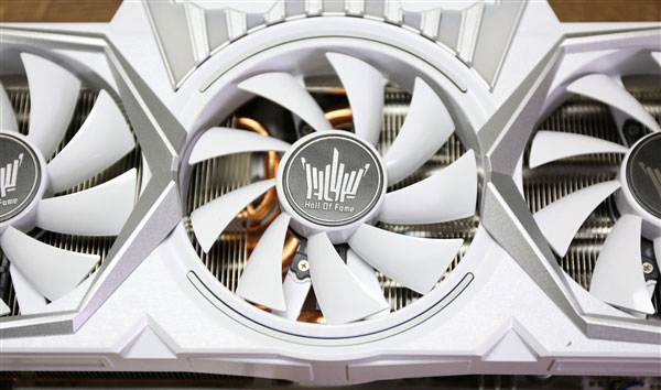 外观设计上,影驰GTX1080Ti名人堂限量版沿用10系名人堂的皇冠造型,更添加了许多RGB元素。12层至臻纯白PCB设计,高强度铝合金HOFArmor+背板,用料豪华。