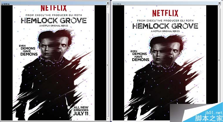 (图片来自美剧 HEMLOCK GROVE的 海报) (经过 Magic Mprph + PS 处理后的效果)