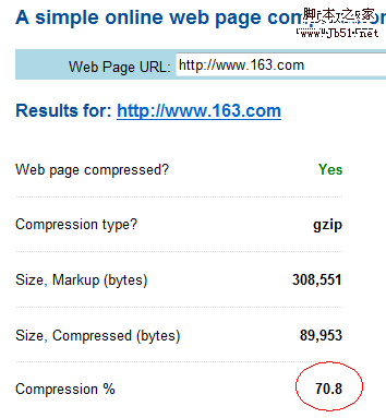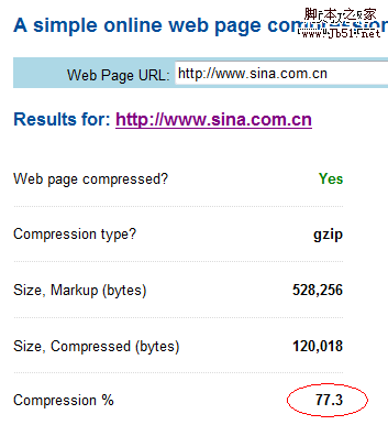 该工具地址http://www.gidnetwork.com/tools/gzip-test.php 大家也可以测试下自己的网站压缩后的情况。