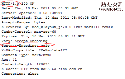 例如,新浪的缓存服务器,也是HTTP1.0协议的,但是他们就很聪明的针对HTTP1.0也开启了压缩服务,如下图: