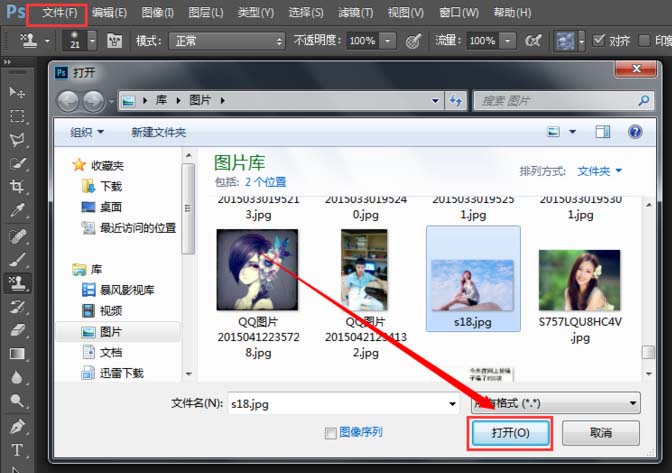 4、再次点击【文件】→【打开】,找到我们需要的背景图片后点击【打开】