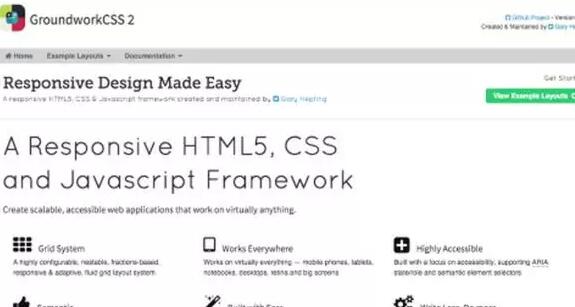 GroundworkCSS2是一个结合了HTML5、CSS和JavaScript的响应式框架,它针对不同的台式机、智能手机和平板设计了一个响应式的栅格系统。它的官方网站提供了大量的应用实例和文档来帮助开发者了解该框架。同时,官网还提供了多种模板,包括标准网站、电子商务网站和图片展示型网站等等。另外,它还具有诸如支持响应式文本和轻松定制化等特征。