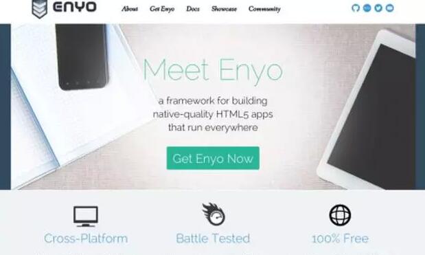 Enyo是一个用于开发原生HTML5应用的前端框架。很多响应式的web应用都是利用Enyo开发的,包括blogWalker, E Notes, Groupon Mobile app和Confero。Enyo提供一系列特性,包括UI组件、实用工具、事件处理和调试等