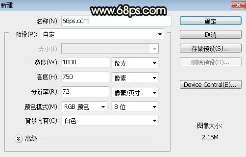 1、打开PS软件,按Ctrl + N 新建画布,尺寸如下图,然后确定。