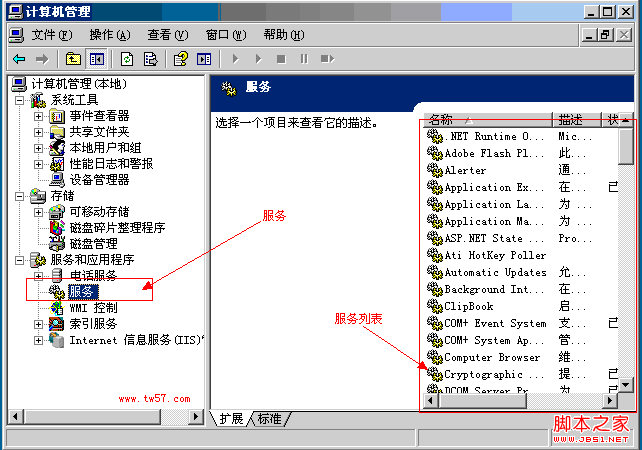 (图1-2计算机管理服务项中的服务列表)