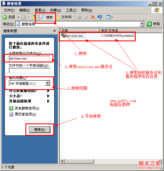 一般来说此文件都是在C:\WINDOWS\system32目录下的,但是因为此目录下文件过多,找起来很累,或者此目录下根本就没有此文件的话,可以通过搜索功能搜索“services.mst”搜索到此文件。打开我的电脑,单击搜索按扭,在搜索或部分文件名这里输入“services.msc”,查找范围就C盘(系统盘),然后单击搜索即可开始搜索。一般等一会儿就可以搜索到相就文件,如果没有搜索到此文件的话,可能是被误删除或者移动了。如果搜索到不是在此目录下的话,建议把此文件复制到WINDOWS\system32目录下。