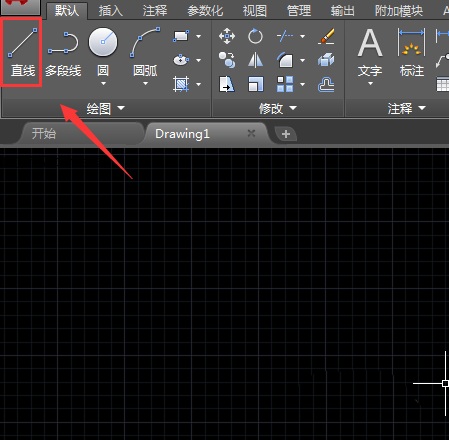 2、在该界面内找到菜单区里的直线命令,如图所示: