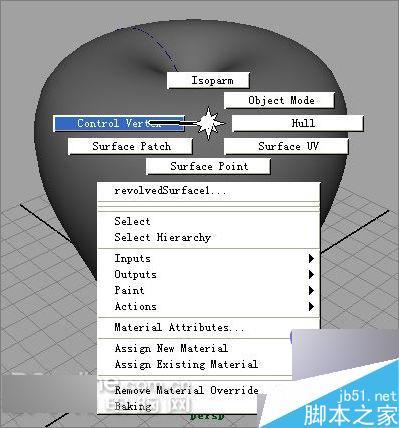 5、在苹果模型上右键,选择Control Vertex菜单,如图5所示。