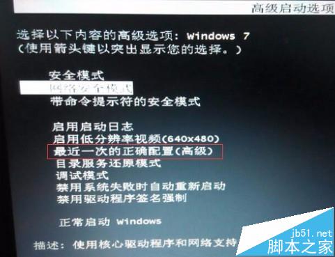 2、之所以选择恢复最近一次的正确配置,是因为鼠标键盘突然失灵,可能是因为误操作造成的,恢复之后,问题能够立即解决。
