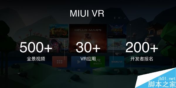 它还提供了一款9轴体感手柄,支持触摸操作;采用特制MIUI VR系统,内含500+全景视频、30+VR应用,200+开发者报名参与。