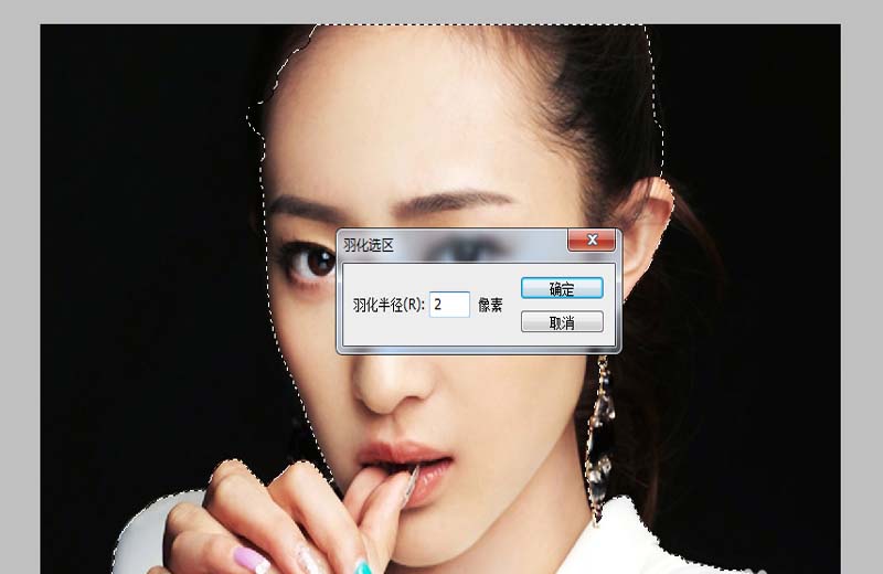 2、选择工具箱里的快速选择工具,选择人物图像,右键单击选区从下拉菜单中选择羽化选项,设置半径为2像素,点击确定按钮。