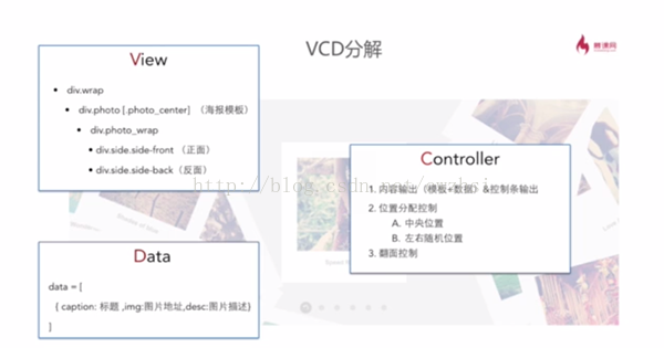 Data数据是很常用的,如果将内容写死到View即HTML中,当要去改变内容的时候就得修改HTML,但是使用VCD的话就只需要修改数据部分就可以了。同时,一般数据部分是由后台生成的,这样的替换就更为方便。这个案例中的海报都是由模板加上数据生成的。