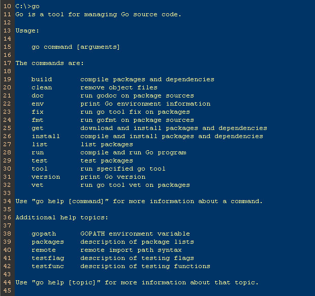 以上就是彩色长颈鹿最近收集整理的关于Go语言命令行操作命令详细介绍的全部内容,更多相关Go语言命令行操作命令详细介绍内容请搜索靠谱客的其他文章。