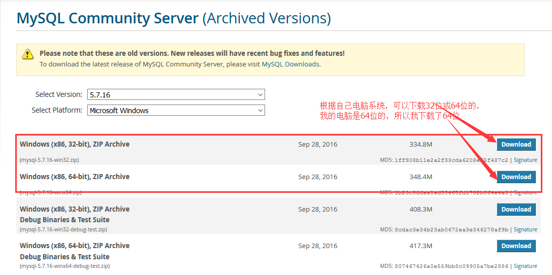 1.mysql官网下载地址:https://downloads.mysql.com/archives/community/