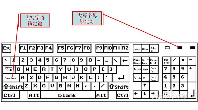 6、Caps Lock叫大写字母锁定键,按一下,右侧第二个按钮会亮起来,这时候只能打出大写字母。再按一下,灯灭了,这时可以打小写字母。