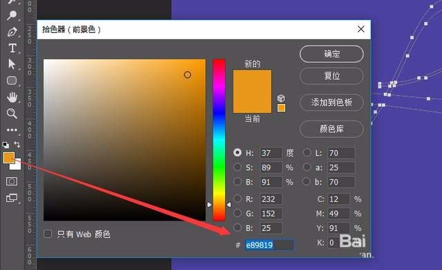 7、设置前景色为: #e89819
