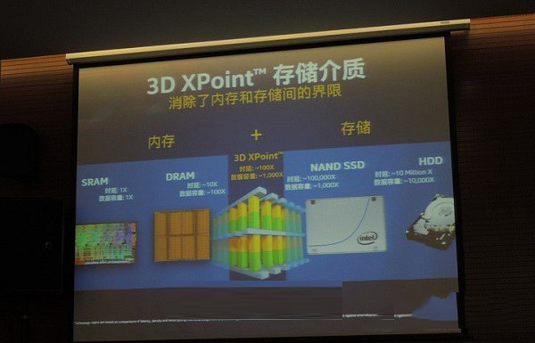 Intel和美光去年联合发布3D XPoint闪存技术,号称是25年来存储技术的革命性突破,速度是目前NAND闪存的1000倍,耐用性也是目前闪存的1000倍,密度是NAND的10倍,而且它的非易失性不仅可以用于NAND硬盘,还可以用于RAM内存,在存储分层里讲,傲腾是解决硬盘存储和内存之间的差距,傲腾是处于中间的位置,其定位还不那么明确,所以才出现了傲腾内存和傲腾SSD。