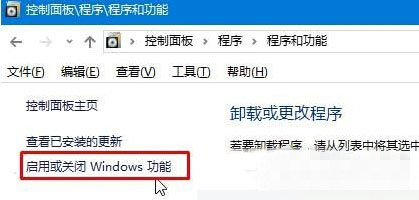 3、在“程序和功能”界面点击“启用或关闭Windows 功能”;
