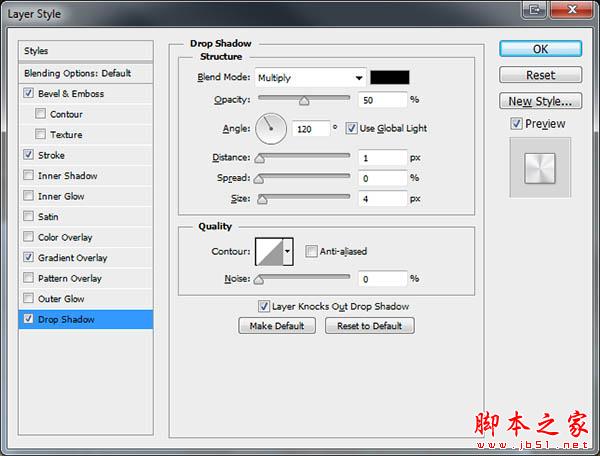 7、先清除当前图层样式后再设置新的样式,参数及效果如下图。
