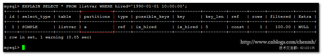 explain select id,joined from tb_partition.members where joined=YEAR(now()); explain select id,joined from tb_partition.members where joined='1963-01-01';