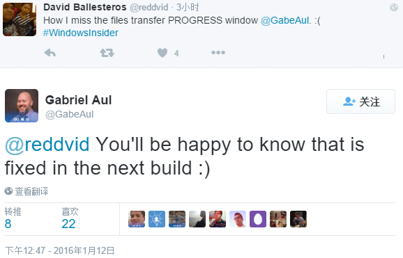以上就是威武台灯最近收集整理的关于Win10预览版11082文件传输进度问题下个版本解决的全部内容,更多相关Win10预览版11082文件传输进度问题下个版本解决内容请搜索靠谱客的其他文章。